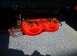 Keine Lust mehr auf Luftmatratze? Wir hätten da eine Alternative für den Sommer 2015: Susi ist ein flottes Sportboot, gebaut von der renommierten Bootswerft Hille, gegründet 1948 in Deutschland. Hille hat auch alle Begleitboote für die Olympischen Sommerspiele 1976 in München gebaut. Das Modell „Malibu 450" ist ein absoluter Klassiker, der noch heute gebaut und verkauft wird: 4,50 lang und 1,88 breit, ausgeliefert am 15.3.1975 in der schicken zweifarbigen Zeit typischen Lackierung Porsche Blutorange und Weiß! Das Boot wurde von einem Liebhaber liebevoll restauriert und mit einem neuen hellgrauen Bootsteppich und einer schicken Polsterung in RIVA Türkis mit orangefarbenen Kedern versehen. Es sind Back to Back Sitze verbaut, die ganz einfach zu einer Liegefläche umgeklappt werden können. Das Boot liegt auf einem speziell angefertigten Trailer der Firma Preugschat, von dem es bequem mittels einer Winde zu Wasser gelassen werden kann. Der Anhänger hat eine Zulassung für 100 km/h, so dass man das Boot auch "auf große Fahrt" in Richtung Gardasee, Mittelmeer oder Nordsee mitnehmen kann.