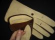 Tolle Vintage Fahrerhandschuhe aus feinem Leder (wahrscheinlich Ziehenleder). Aufgrund der leicht unregelmäßigen Nähten wurde diese sehr wahrscheinlich von Hand gefertigt. Auf dem Handrücken beiges, aufgerautes Wildleder und innen dunkelbraunes Glattleder.