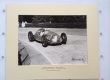 Großer Silbergelatine Abzug vom Originalnegativ des Fotografen Louis Klemantaski: Für die Zeit der Aufnahme extrem scharfe Wiedergabe des Auto Union Rennwagens von Tazio Nuvolari beim Großen Preis der Schweiz in Bremgarten 1939. Das Foto kommt mit Passepartout und rückseitigem Zertifikat über die Autentizität. Darüber hinaus ist das Foto rechts unten vom Fotografen signiert. Ein wirklich brillanter Abzug!