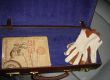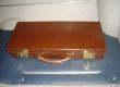 Dunkelbraunes Leder und innen blauer Samt. Verschlüsse in Ordnung. Top Zustand, aber ohne Schlüssel.