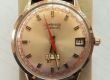 Seltene vergoldete Longines automatic OLYMPIAN mit Datumsanzeige. Ehrlich gesagt habe ich auch im Netz keine vergleichbare vergoldete OLYMPIAN mit rotem Sekundenzeiger gesehen. Diese Uhr stammt eventuell aus dem Jahr 1972 als Longines Sponsor der Olympischen Spiele in München war. Auf der Rückseite ist "10K gold filled" eingraviert. Schwarzes Lederarmband. Schließe hat kein Longines Logo, daher wahrscheinlich nicht original.