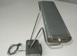 Die Lampe ist zwar schon fast 80 Jahre alt aber spendet ein sattes, warmes Licht. Sie lässt sich in der Höhe und im Neigungswinkel mittels des V-förmigen Armes und des Reflektors variabel verstellen und bietet somit eine individuelle und optimale Ausleuchtung des Arbeitsplatzes. Der Lampenarm ist wie der Lampenschirm frei nach vorne und hinten schwenkbar. Dieses französische Modell der Eileen Gray ist ein frühes Exemplar mit dem Nickel-Kippschalter (kein Plastik!) und einer grüngrauen Lackierung.